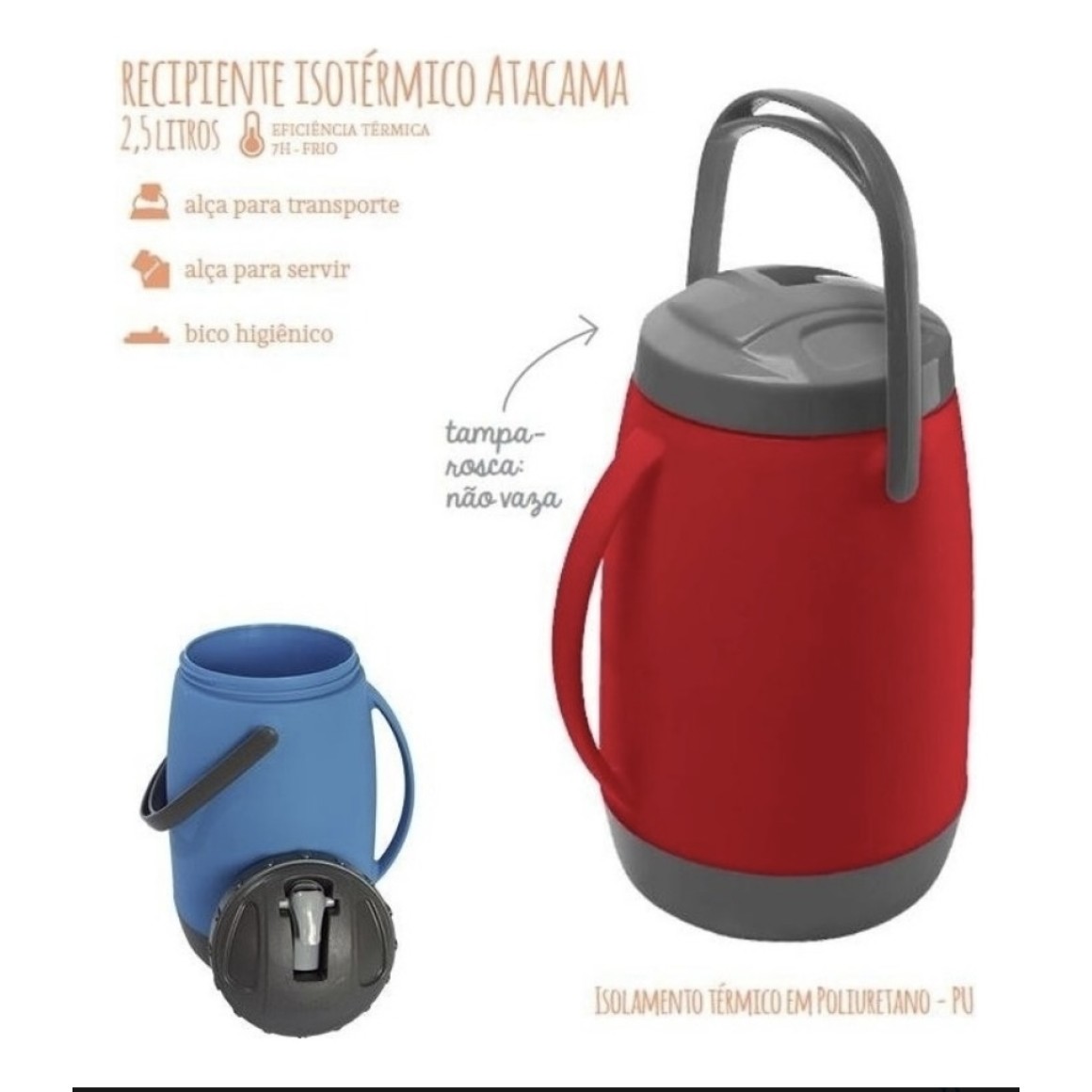 Garrafa isotérmica atacama 2,5l com bico vermelho soprano