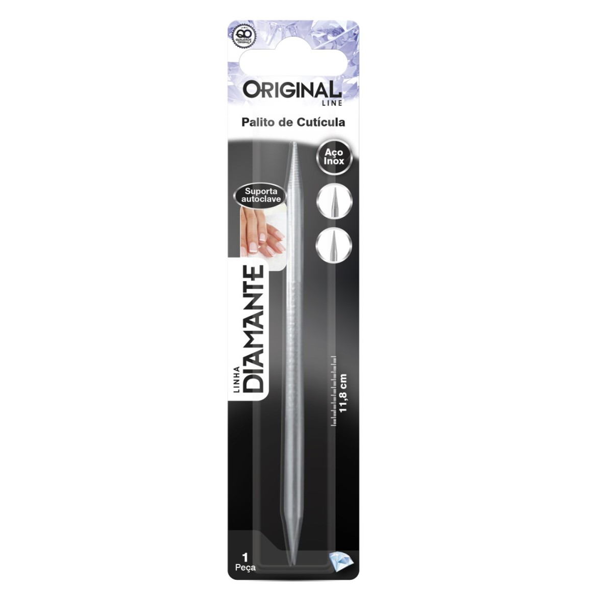 O palito para limpeza de cutículas da Original Line é produzido em aço inox de qualidade e pode ser esterilizado em autoclave.
