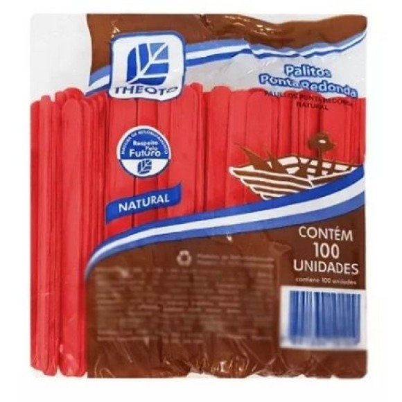PALITO SORVETE ESCOLAR VERMELHO PONTA REDONDA C/100PÇS 10CM 1272 51713 THEOTO