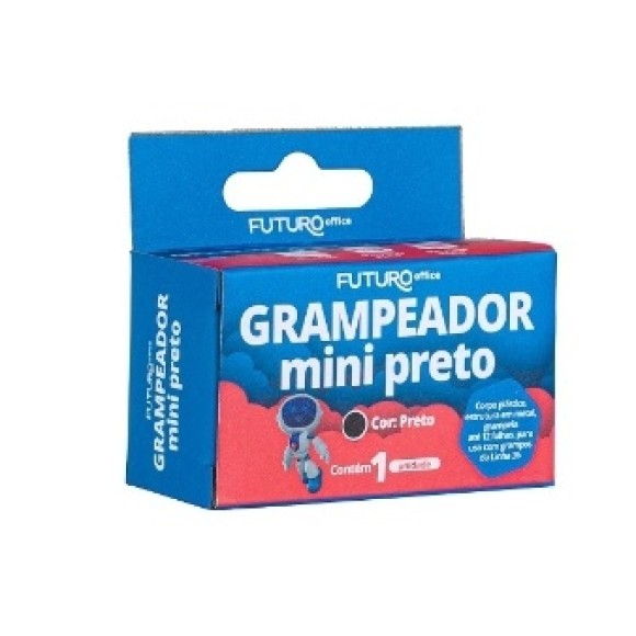 O Mini Grampeador Plástico Preto Base de 6,5cm Futuro possui design moderno e leve, o que proporciona conforto ao grampear.