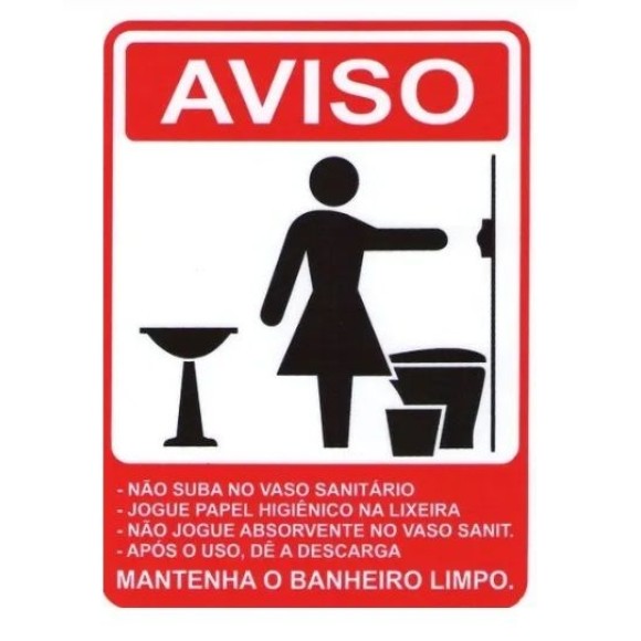 Placa de Sinalização - Aviso Mantenha o Banheiro Limpo fem.- Pacific