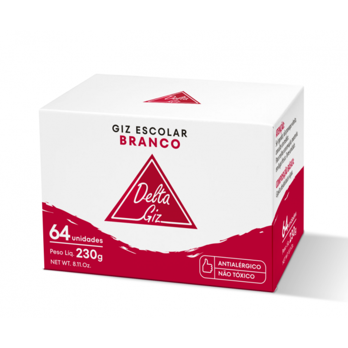 O giz escolar comum branco possui 64 palitos, é antialérgico, possui qualidade comprovada por professores e alunos, sendo o giz mais utilizado em todo território nacional.