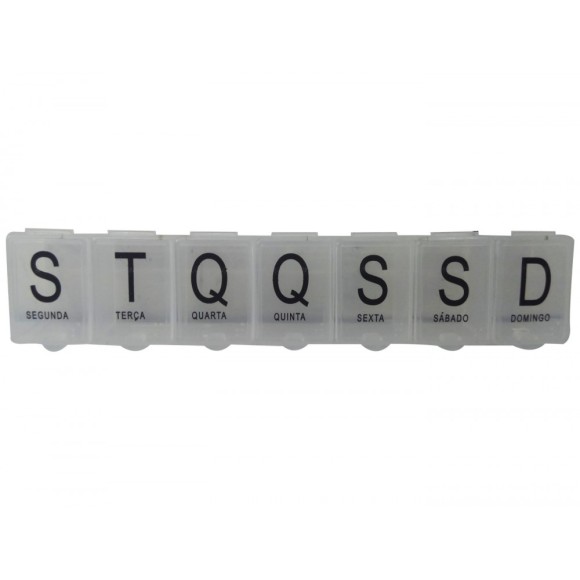 Produto simples e muito prático, com 1 compartimento para cada dia da semana, com tampa individual.