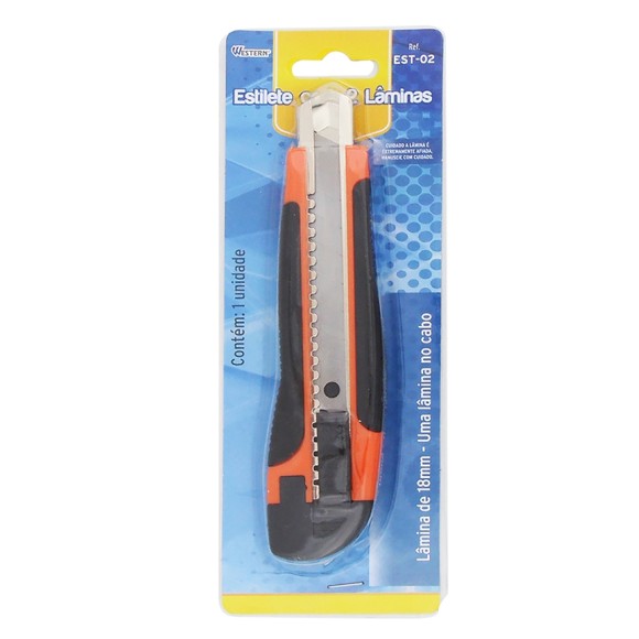 4. Para trocar as lâminas, retire a tampa. Aperte e empurre a auto trava para baixo até o final do estilete. Retire a lâmina antiga e encaixe a lâmina nova na auto trava, após, insere-a cuidadosamente no estilete apertando a trava.