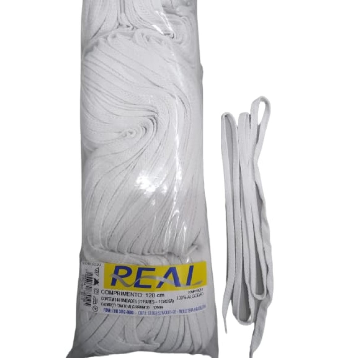 Cadarço chato 120cm branco ou preto pacote com 72 pares Real