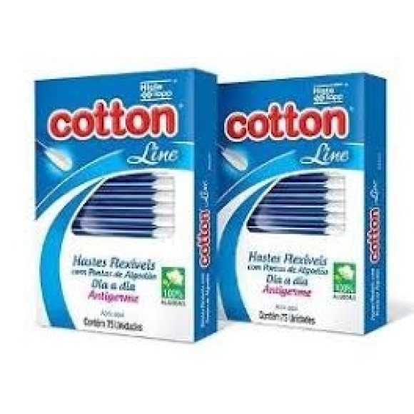 Cotonete cotton line pacote com 12 caixinhas contendo 75 unidades cada Higgie Topp