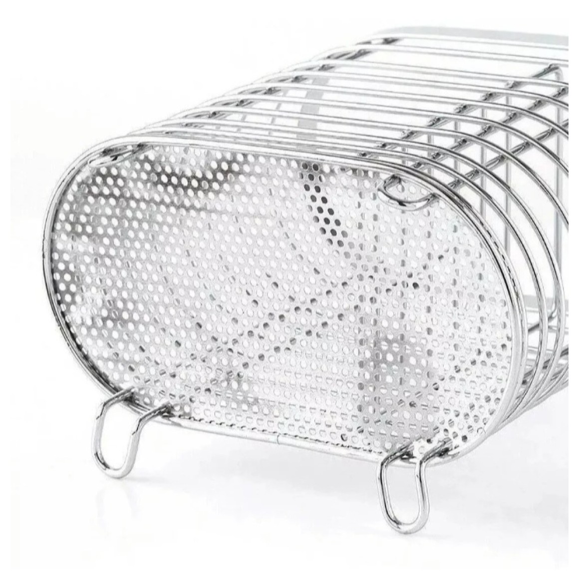 Feito em metal cromado com dois compartimentos internos, abs furadinho para não acumular água.