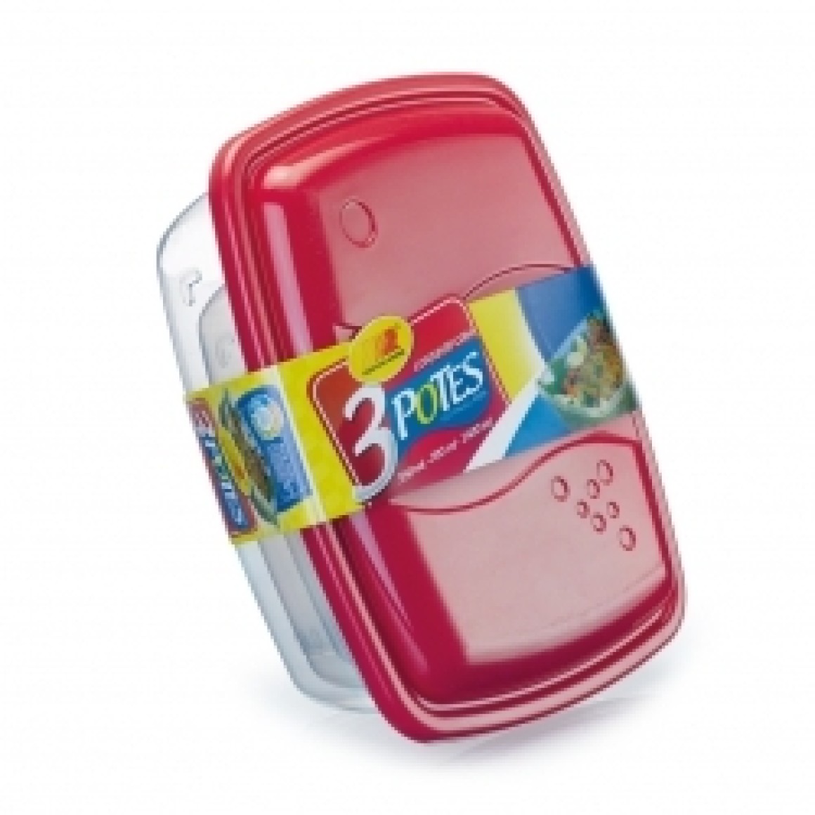 O pote retangular com tampa é ideal para o dia a dia e garante o armazenamento
