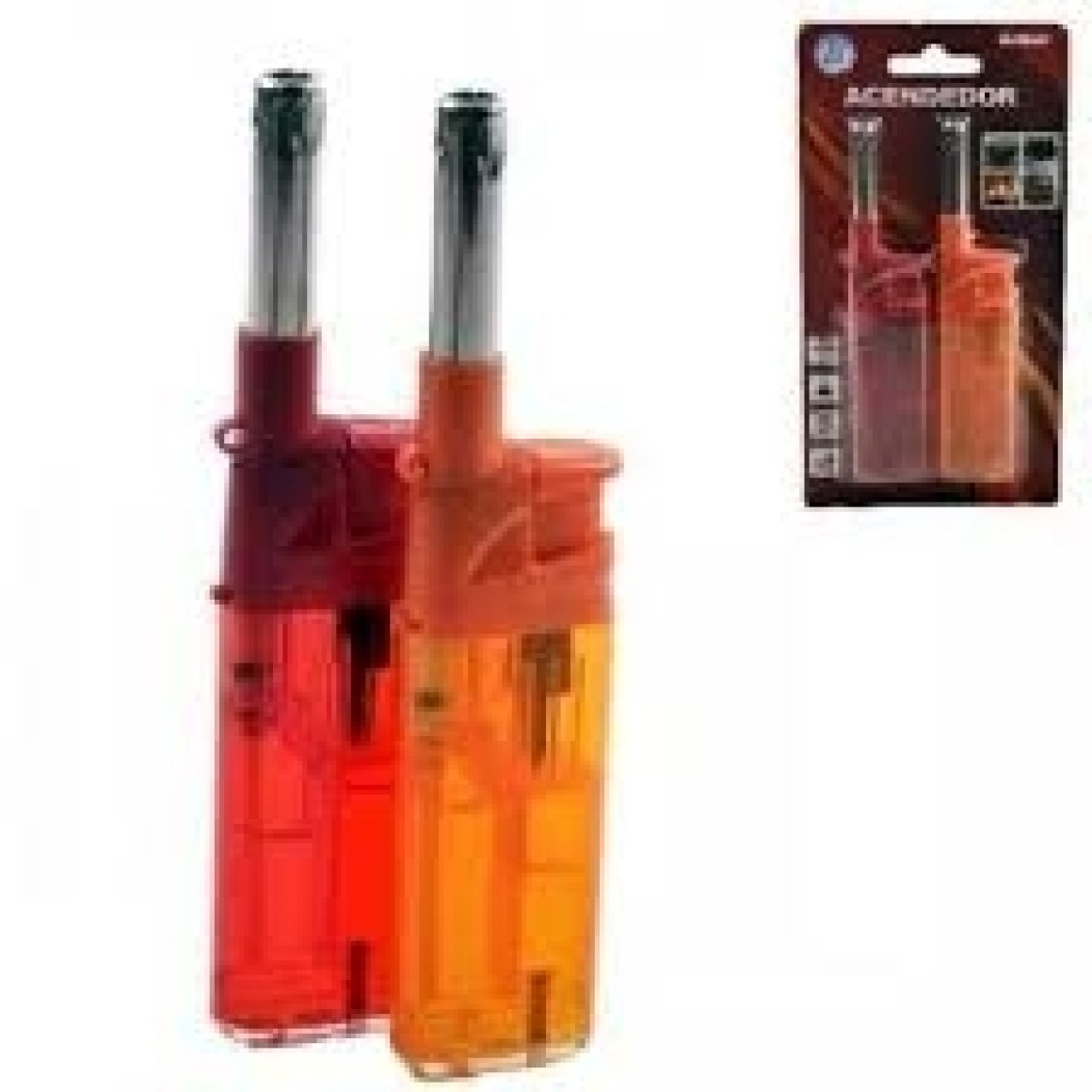 Acendedor multiuso a gás, com trava de segurança e regulador de chama.