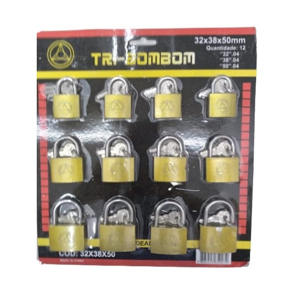 Cadeado c/12 pçs 32/38/50mm crs-7660 9279 tri-bombom