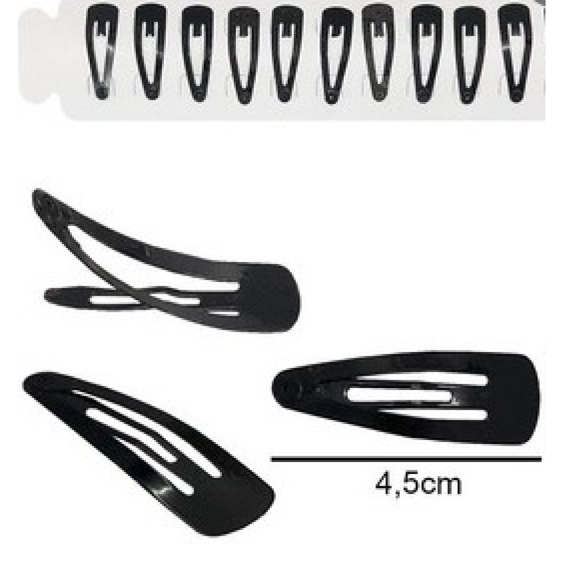 Presilha tic tac preto pequeno 4,5cm cartela c/12 pçs 1094 rt