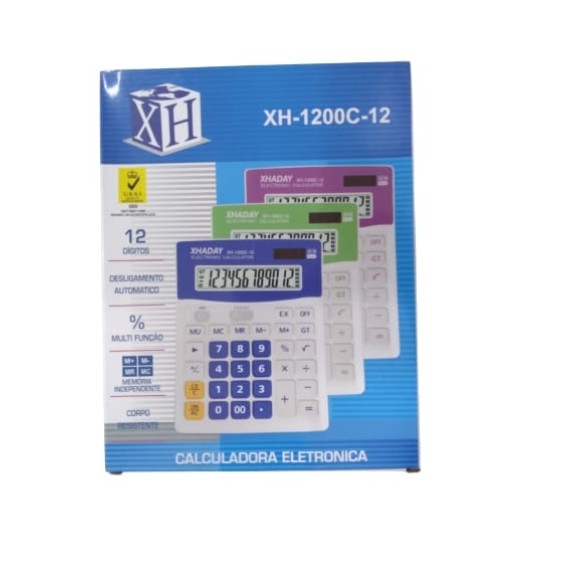Calculadora c/1 peça xh-1200c-12 12 digitos colorida 15x19cm 1 pilha aa