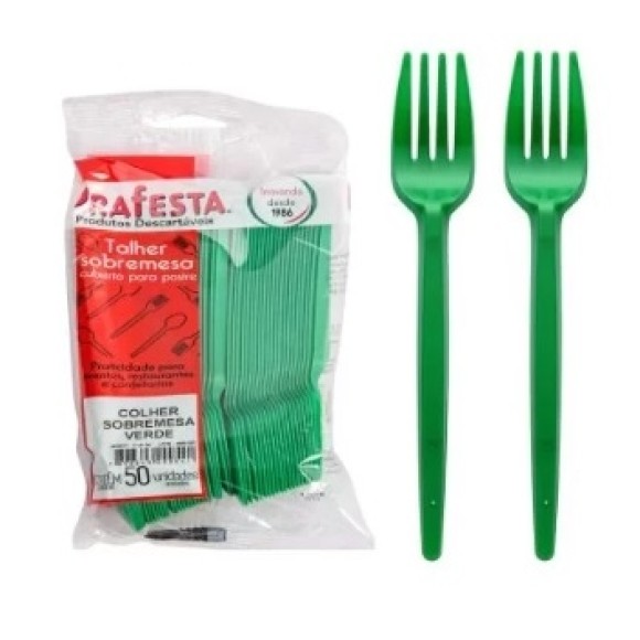 Garfo descartavel sobremesa verde c/50pçs prafesta