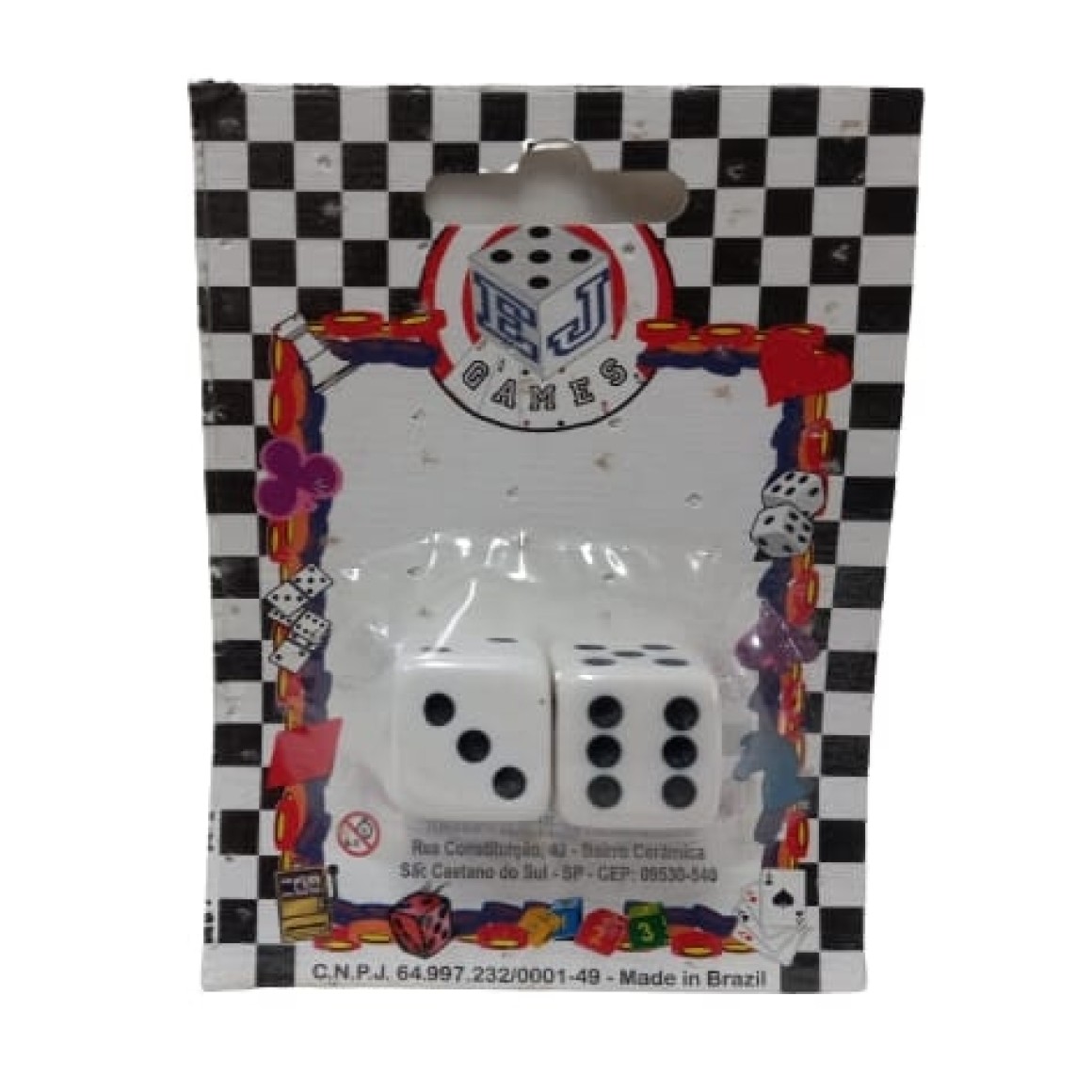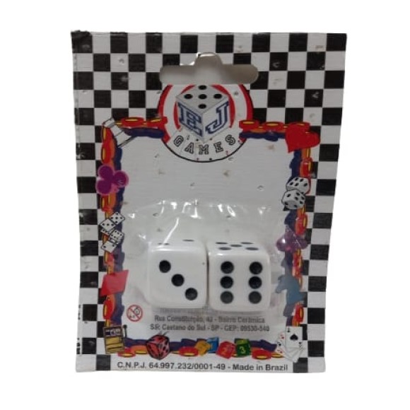 Cartela com 2 dados de 6 faces (d6) de 20mm, na cor branca.