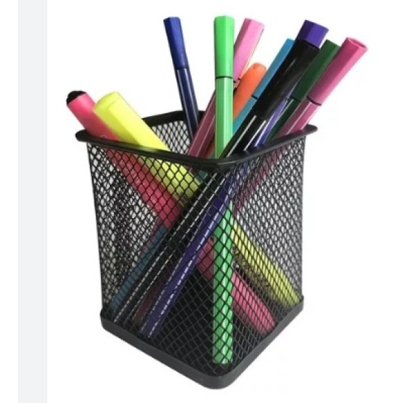 Porta caneta c/1pç 022 quadrado metal preto top mix