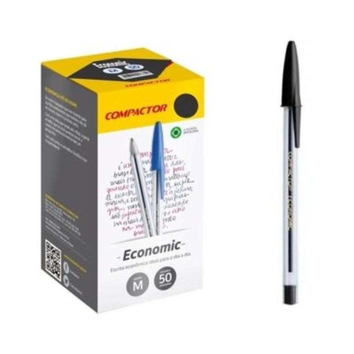 Caneta economic media preta com 50 unidades compactor