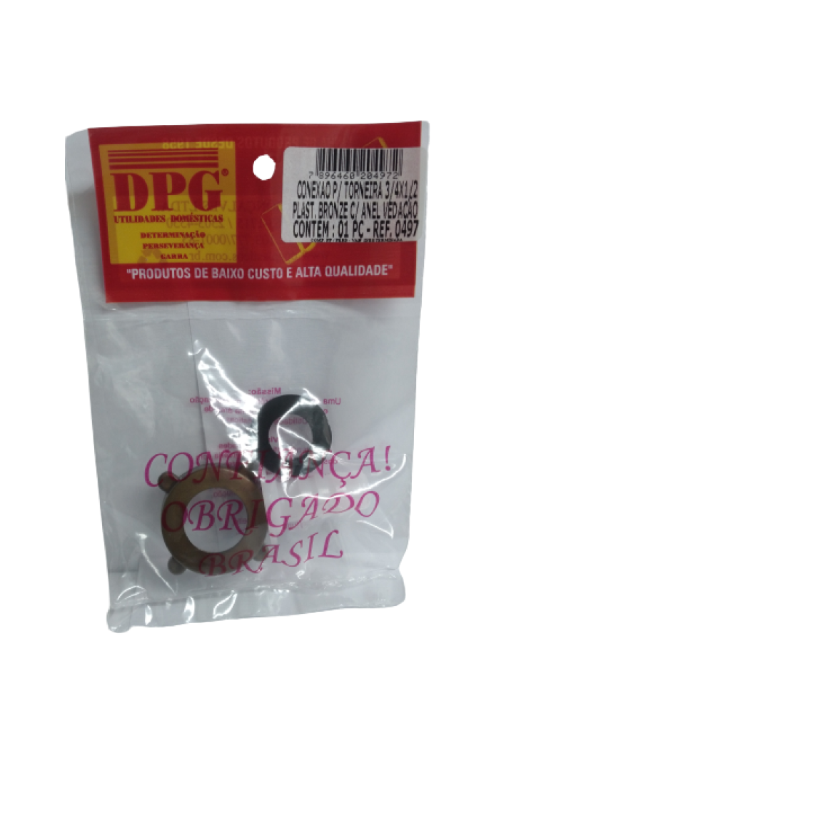 Conexão p/ torneira 3/4 x 1/2 plastico bronze c/ anel vedação c/1 0497