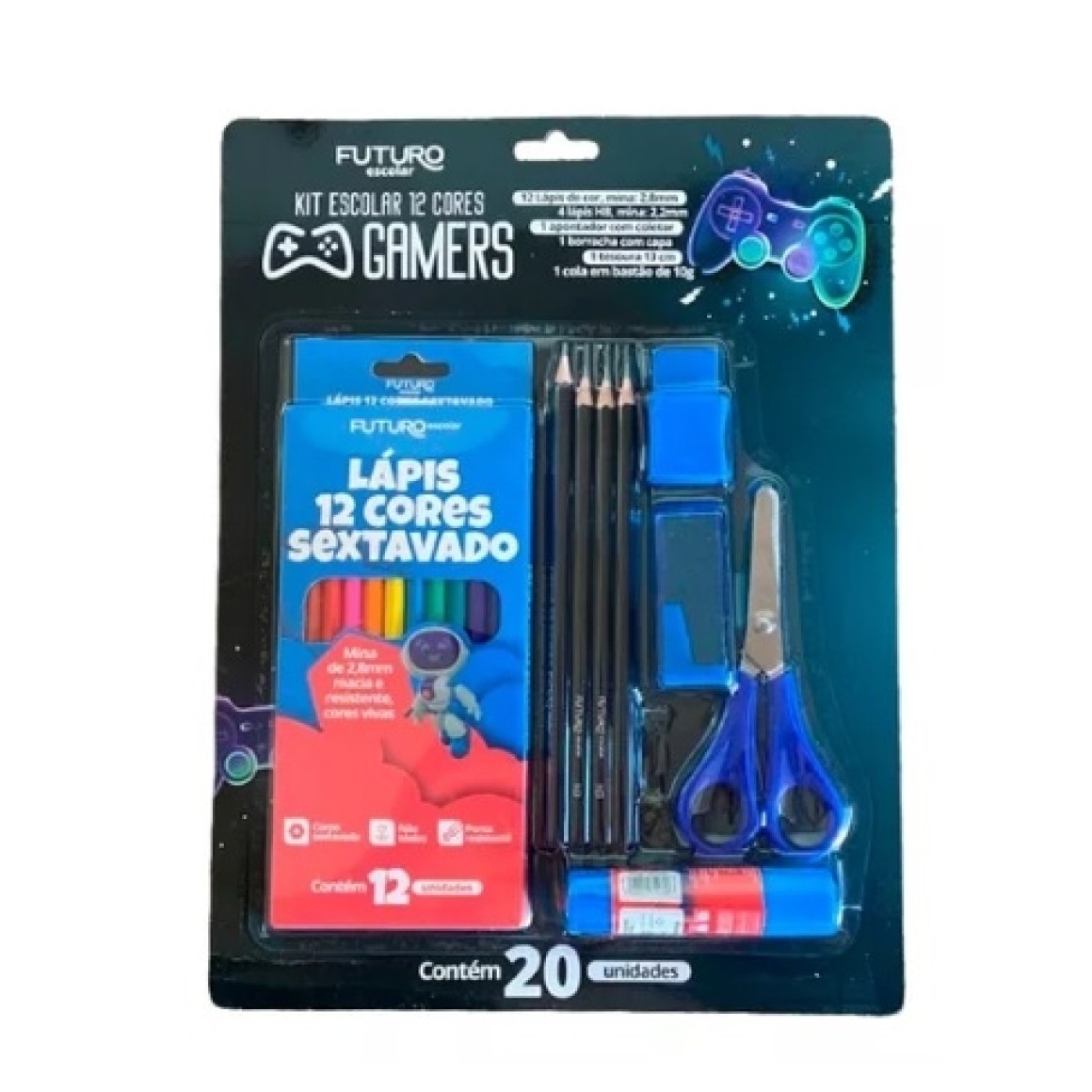 KIT ESCOLAR LAPIS 12 CORES SEXTAVADO FE092236 GAMERS C/20 PEÇAS FUTURO